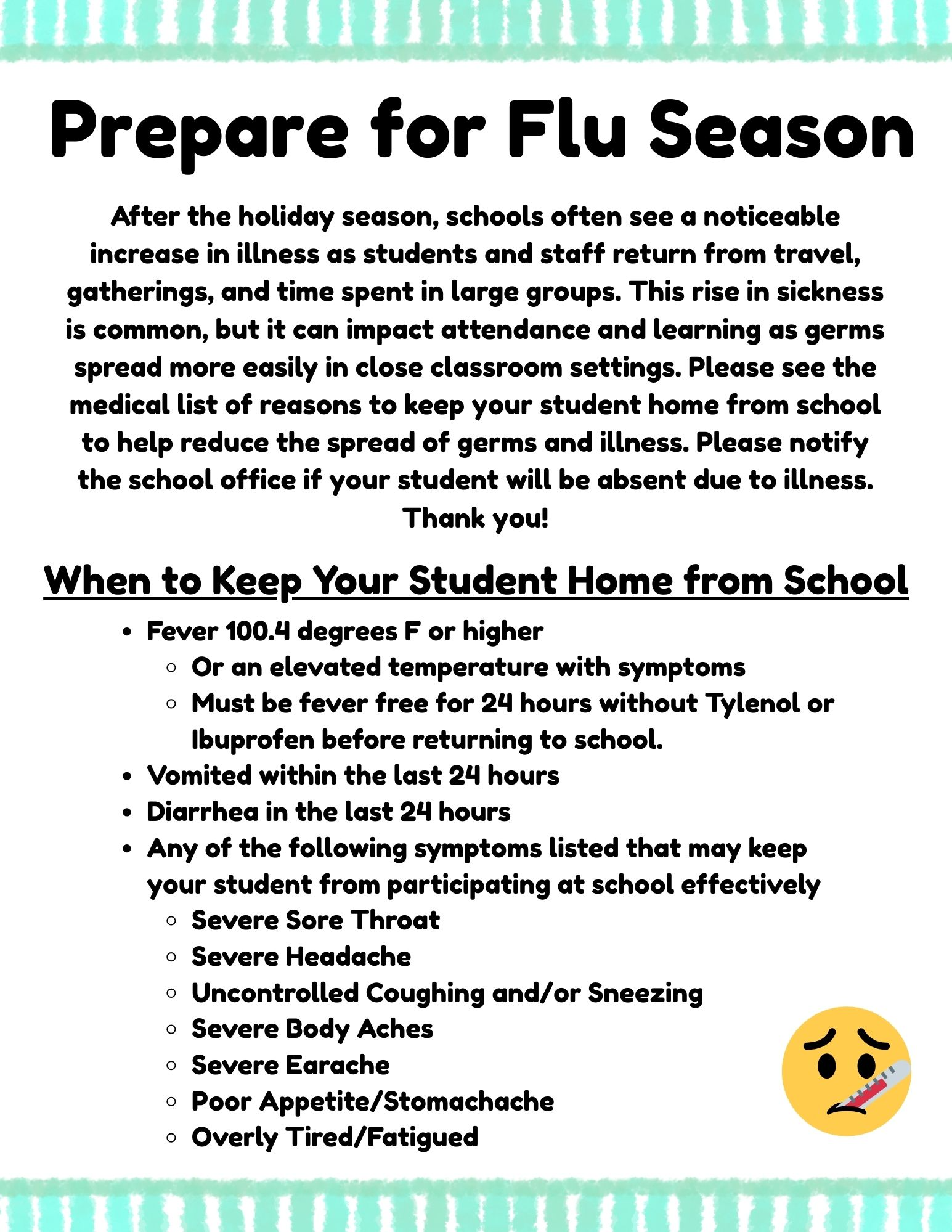 *If you are sick with flu-like illness, CDC recommends that you stay home for at least 24 hours after your fever is gone except to get medical care or for other necessities. (Your fever should be gone for 24 hours without the use of a fever-reducing medicine.)
